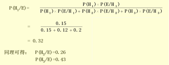 (2)当E1和E2同时出现时,P(H1/ E1 E2)、P(H2/ E1 E2)、P(H3/ E1 E2)的值;