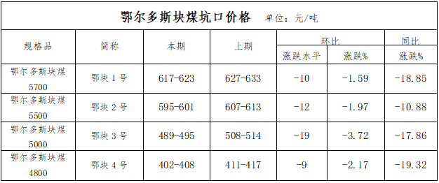 本报告期,鄂尔多斯地区混煤价格指数下降,各个环节运行结果如下: