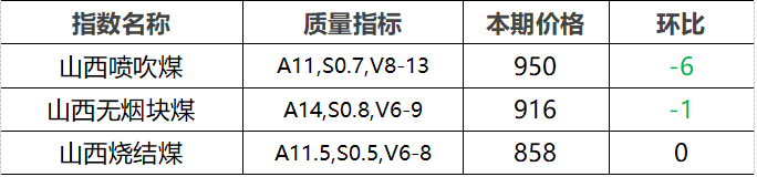 4.市场价格主要为中国太原煤炭交易网自动成交交易价格,个别为企业报价(坑口含税)。