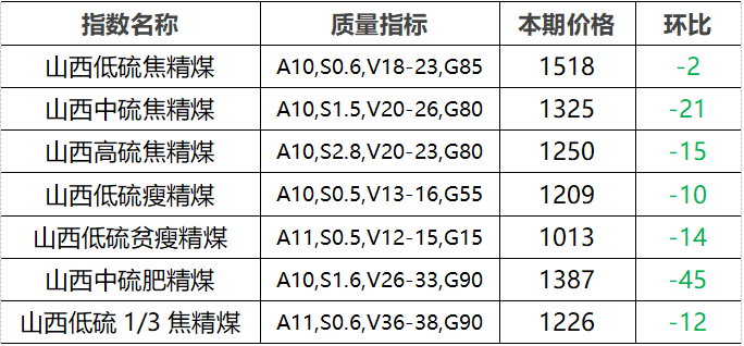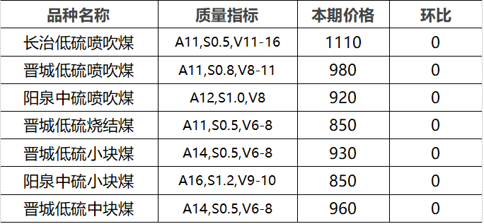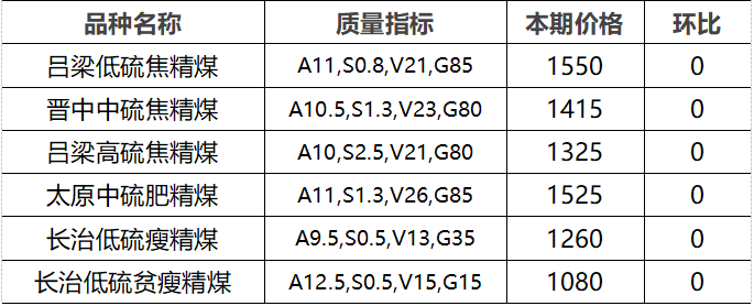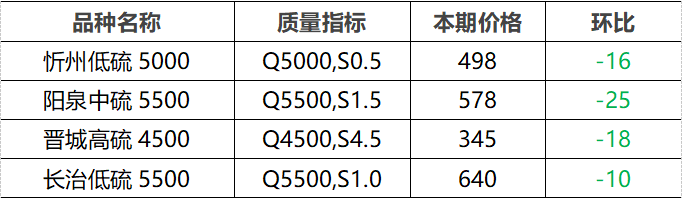 4.市场价格主要为中国太原煤炭交易网自动成交交易价格,个别为企业报价(坑口含税)。