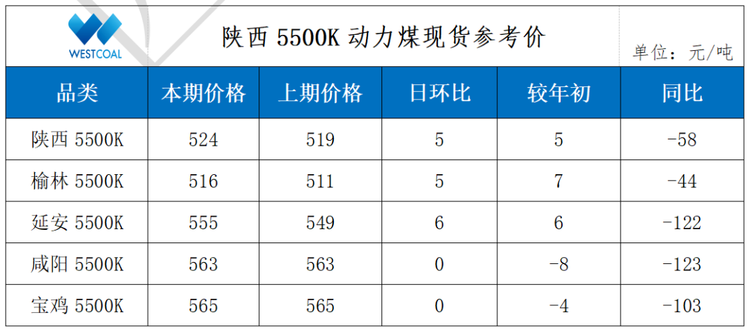 • 陕西5500K动力煤现货参考价