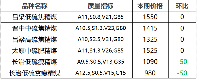 4.市场价格主要为中国太原煤炭交易网自动成交交易价格,个别为企业报价(坑口含税)。