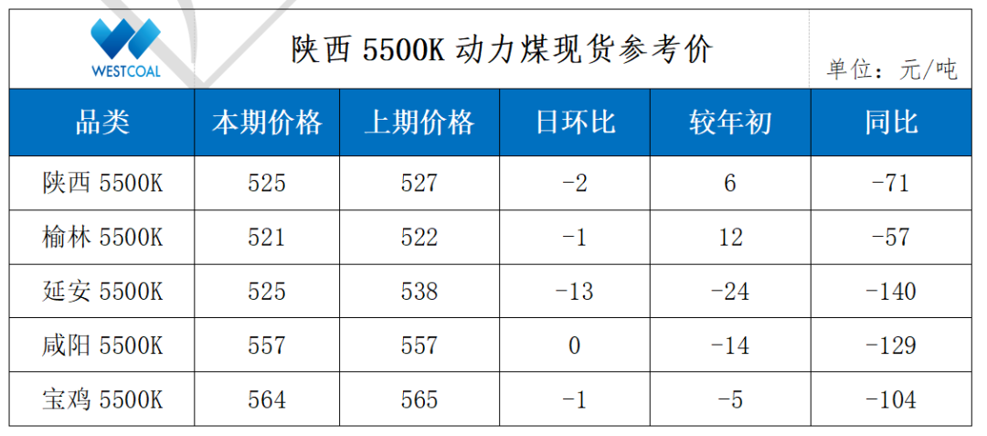 • 陕西5500K动力煤现货参考价
