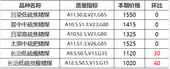 4.市场价格主要为中国太原煤炭交易网自动成交交易价格,个别为企业报价(坑口含税)。