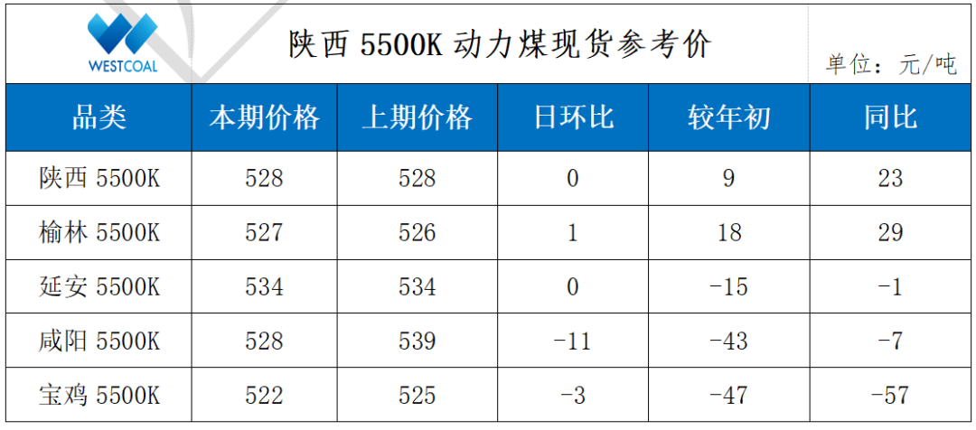 • 陕西5500K动力煤现货参考价