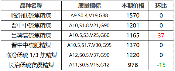 4.市场价格主要为中国太原煤炭交易网自动成交交易价格,个别为企业报价(坑口含税)。