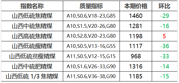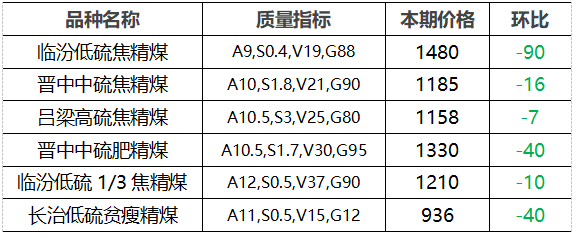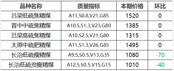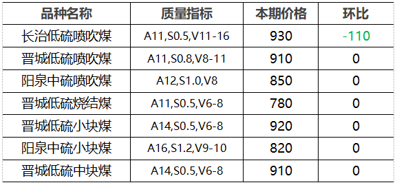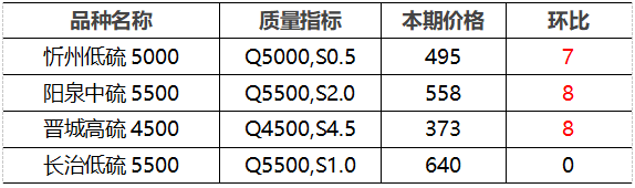 4.市场价格主要为中国太原煤炭交易网自动成交交易价格,个别为企业报价(坑口含税)。
