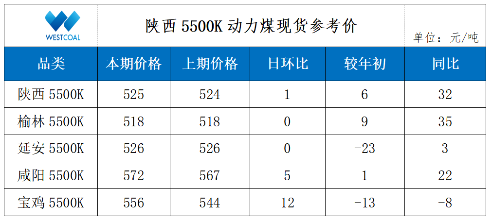 • 陕西5500K动力煤现货参考价
