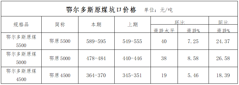 四、鄂尔多斯原煤价格