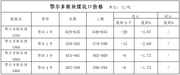本报告周期(2026年3月28日--2026年4月3日,下同),鄂尔多斯煤价格指数报收560点,环比下降22点,降幅3.84%。
