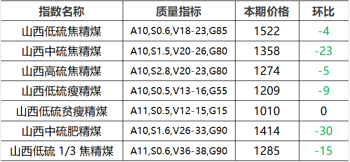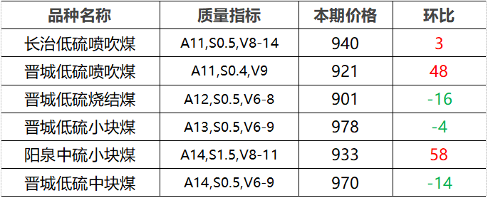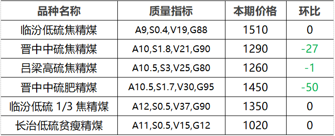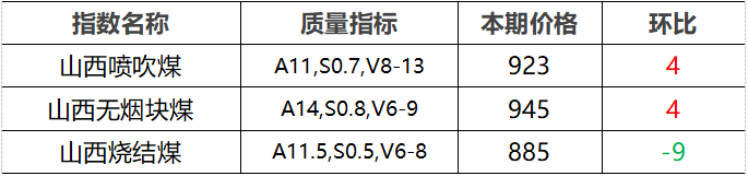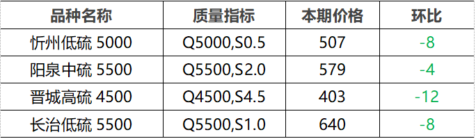 4.市场价格主要为中国太原煤炭交易网自动成交交易价格,个别为企业报价(坑口含税)。