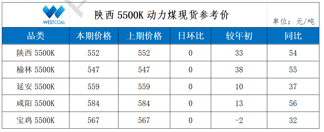 • 陕西5500K动力煤现货参考价