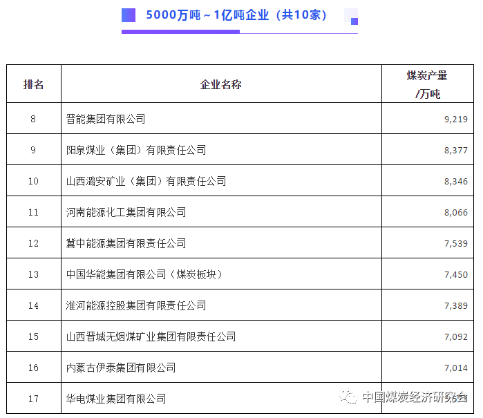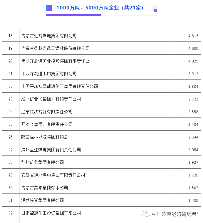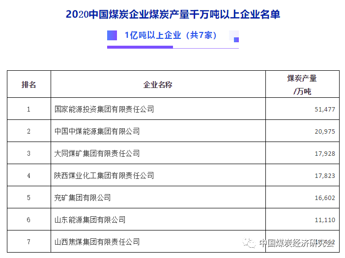 2020中国煤炭企业煤炭产量千万吨以上企业名单发布