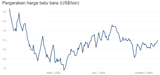据CNBC Indonesia 频道10月30日报道的消息,路孚特(Refinitiv)数据显示,周三(2025年10月29日)交易日,全球动力煤基准的洲际交易所(ICE)纽卡斯尔煤炭期货合约交易价格连续上涨,收盘价接近每吨110美元,交收于109.9美元/吨, 环比前一交易日上涨0.55%。