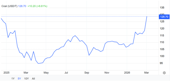 价格上涨的主要推升动力可能来自于中东。煤炭价格的上涨发生在伊朗战争局势加剧之际,2月28日(星期六),以色列和美国袭击伊朗,导致世界主要石油和天然气贸易通道霍尔木兹海峡关闭,也导致全球石油价格暴涨,周一国际市场石油价格上涨了7%,而欧洲天然气价格则飙升了50%。