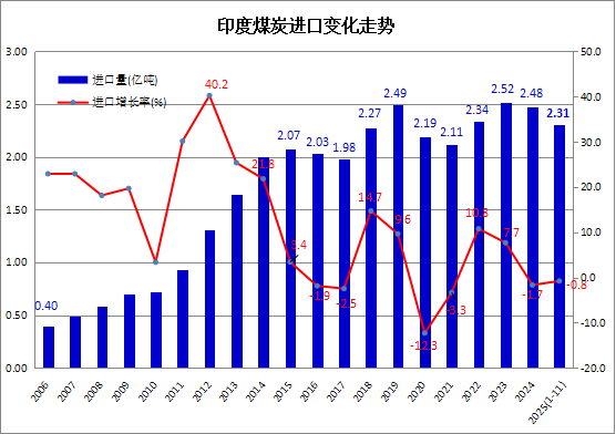 2025年印度动力煤进口下降6%,冶金煤进口增长10%