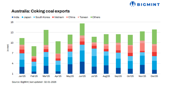BigMint:2025年澳大利亚动力煤出口同比下降1.2%,炼焦煤出口同比下降5%