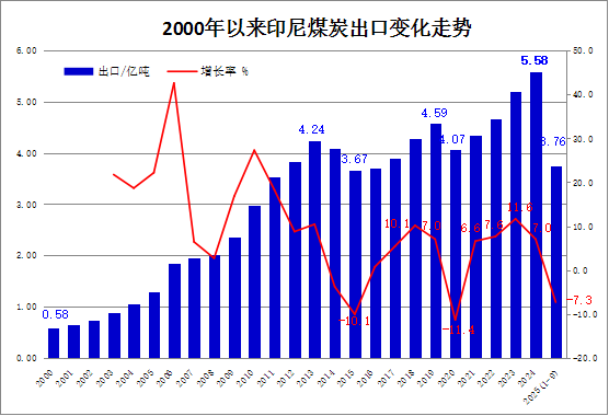 印尼统计局:2025年前三季度印尼煤炭出口同比下降7.3%