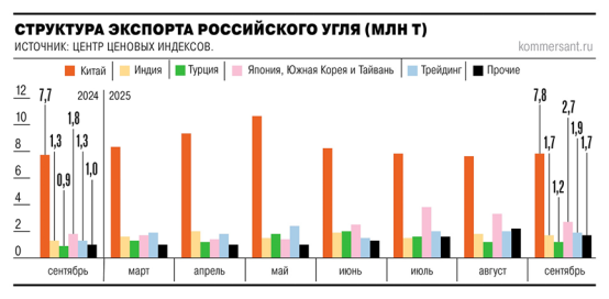 据“主权及区域评级机构”(Эксперт РА)的分析师基里尔·利亚霍夫(Kirill Lyakhov)表示,10月的前七天,中国工业生产在国庆假期和“黄金周”的影响下有所放缓,而物流和港口则按有限日程运营。他解释说,10月8日至10日后,企业恢复运营,电力系统负荷急剧增加,尤其是在北方和东部省份,电力和热力消耗上升,发电厂开始积极动用煤炭储备。基里尔·利亚霍夫补充道,在该月后半段,计划中的冬季储备将得到补充,可能进一步增加了对煤炭包括进口煤炭的需求。