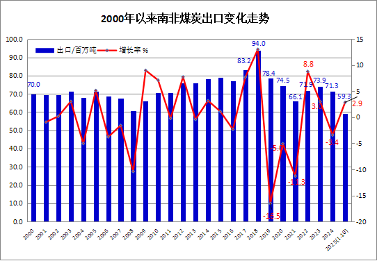 2025年1-10月南非煤炭出口同比增长2.9%