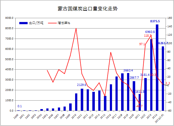 2025年前三季度蒙古国煤炭出口同比增长2.3%
