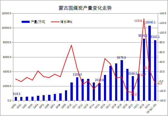 其中,10月份蒙古国煤炭产量为1016.59万吨,比去年同期的1026.87万吨下降1.0%,环比9月份的1013.0万吨增长0.4%。