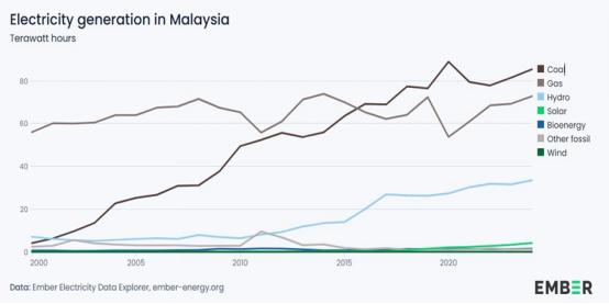 Ember 的数据显示,21世纪初,天然气约占该国发电量的80%,但截至2025年,天然气仅占马来西亚电力供应的约30%。
