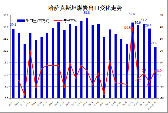 前三季度哈萨克斯坦煤炭出口同比增长3.0%,出口欧盟大增