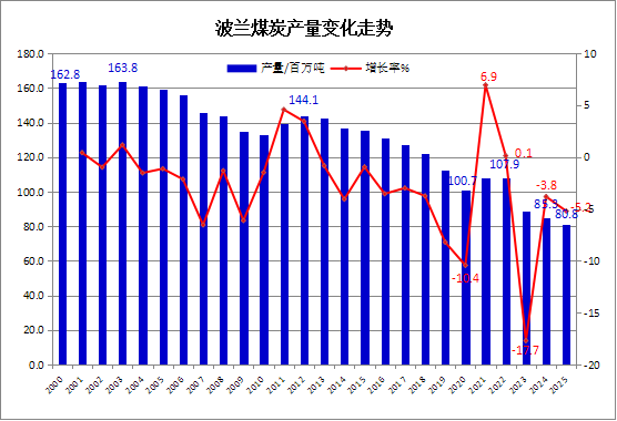 2025年波兰煤炭产量8082万吨,同比下降5.2%