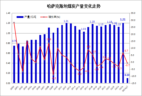 2026年1月哈萨克斯坦煤炭产量同比减少0.7%,环比下降19.4%