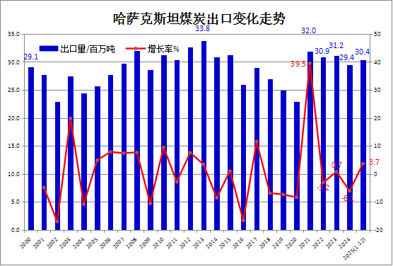2025年哈萨克斯坦煤炭出口3043万吨,同比增长3.7%