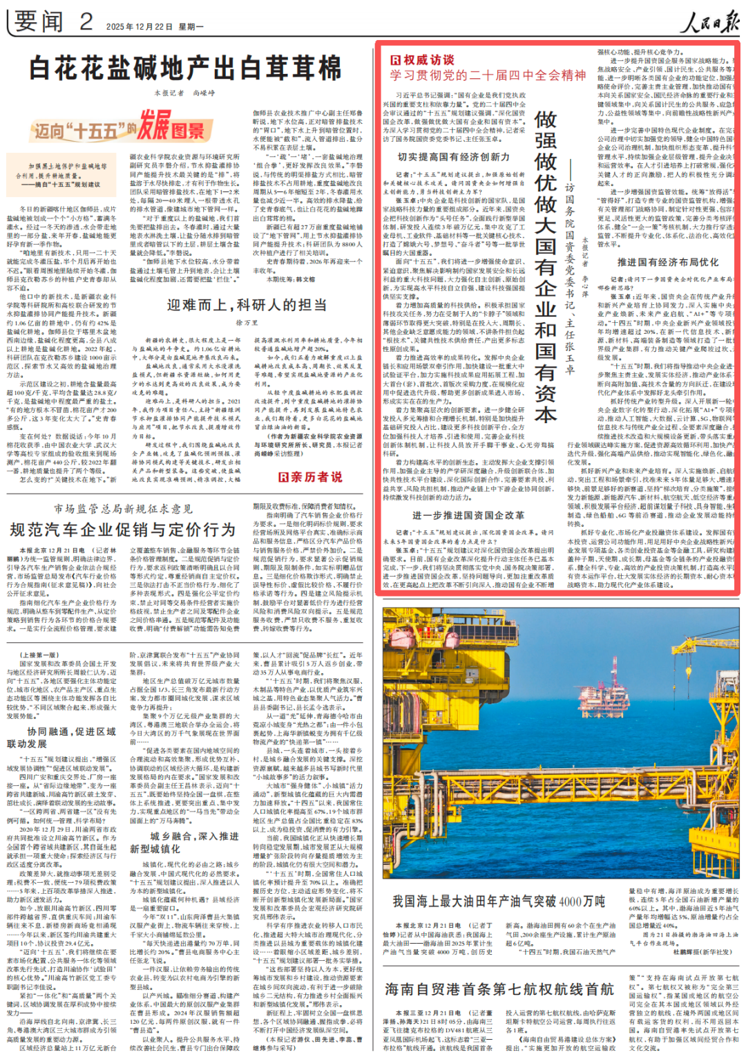 记者:“十五五”规划建议提出,加强原始创新和关键核心技术攻关。请问国资央企如何增强自主创新能力,勇当科技创新主力军?