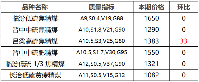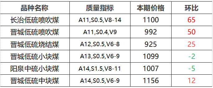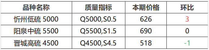4.市场价格主要为中国太原煤炭交易网自动成交交易价格,个别为企业报价(坑口含税)。