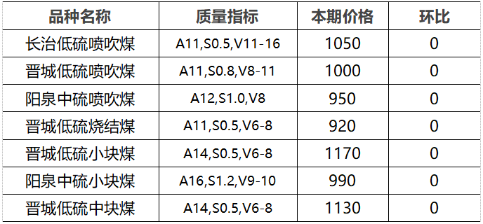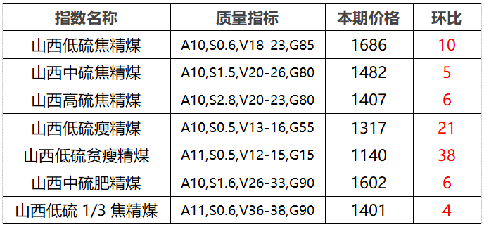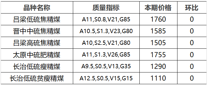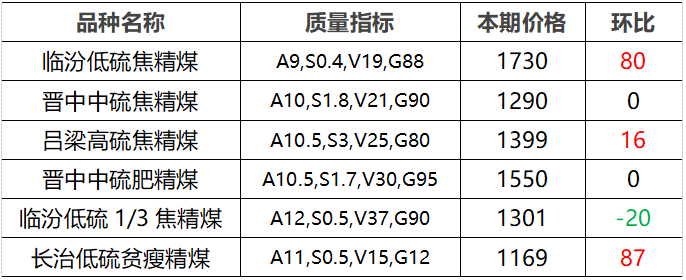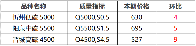 4.市场价格主要为中国太原煤炭交易网自动成交交易价格,个别为企业报价(坑口含税)。
