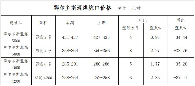 二、鄂尔多斯混煤车板价格及到港指导价格