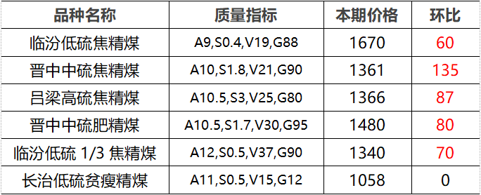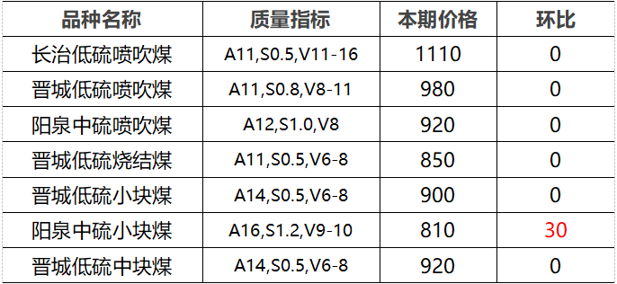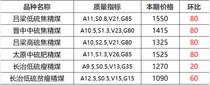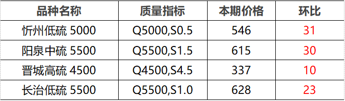 4.市场价格主要为中国太原煤炭交易网自动成交交易价格,个别为企业报价(坑口含税)。