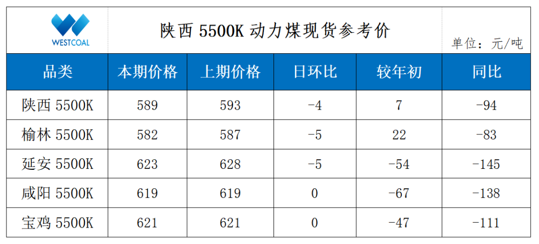 • 陕西5500K动力煤现货参考价