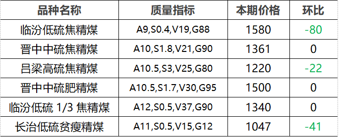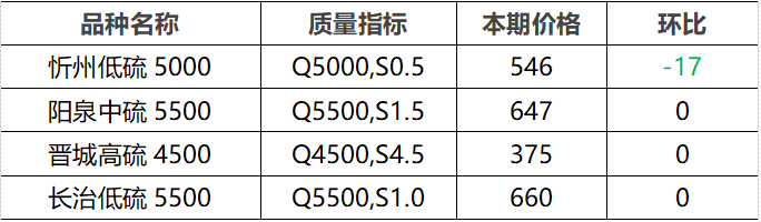 4.市场价格主要为中国太原煤炭交易网自动成交交易价格,个别为企业报价(坑口含税)。
