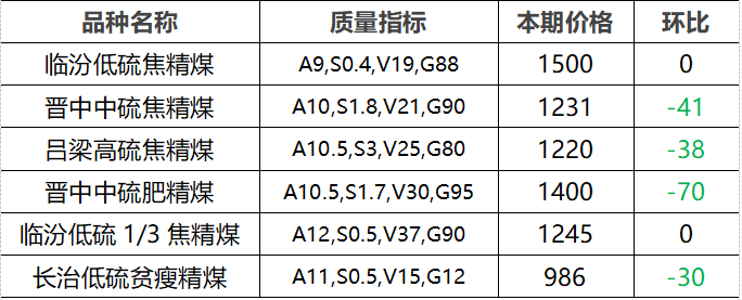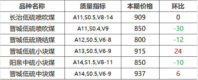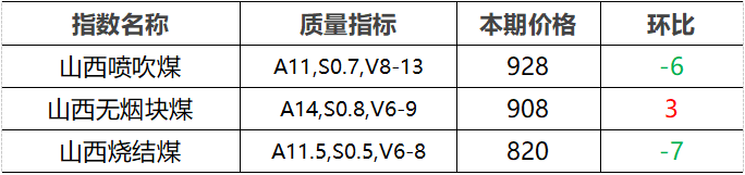 4.市场价格主要为中国太原煤炭交易网自动成交交易价格,个别为企业报价(坑口含税)。