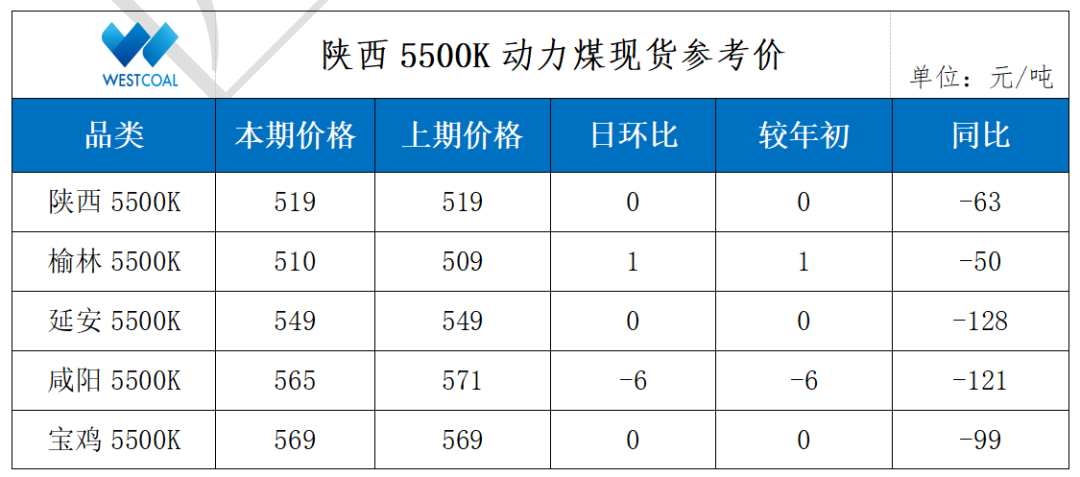 • 陕西5500K动力煤现货参考价