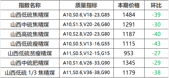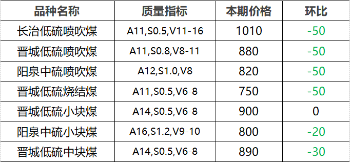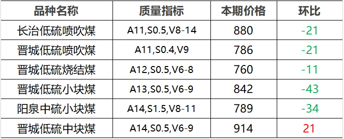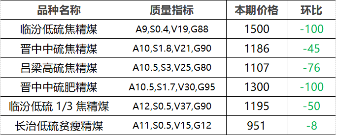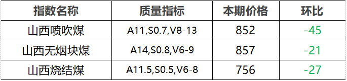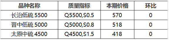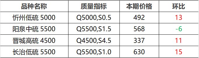 4.市场价格主要为中国太原煤炭交易网自动成交交易价格,个别为企业报价(坑口含税)。