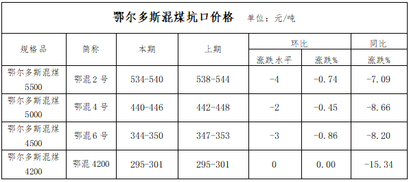 四、鄂尔多斯原煤价格