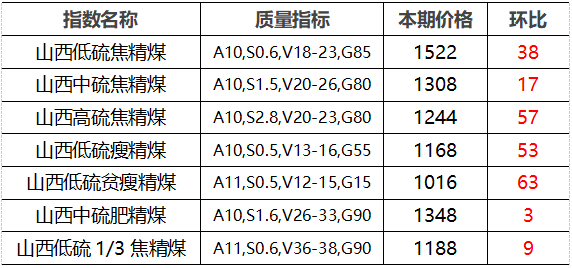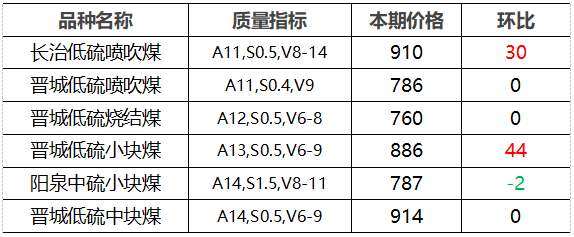 4.市场价格主要为中国太原煤炭交易网自动成交交易价格,个别为企业报价(坑口含税)。