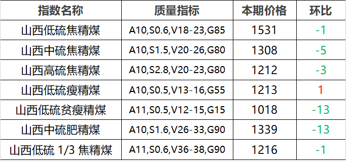 4.市场价格主要为中国太原煤炭交易网自动成交交易价格,个别为企业报价(坑口含税)。