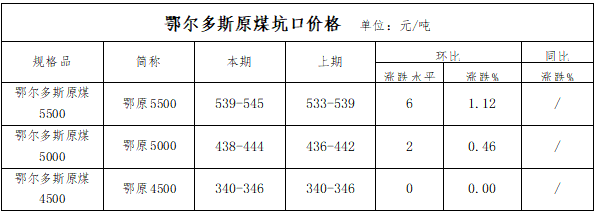 本报告期,鄂尔多斯地区混煤价格指数上涨,各个环节运行结果如下:
