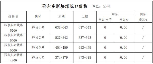 2、坑口块煤价格情况。从本周坑口块煤价格来看,所有规格品环比持平,5500kcal/kg热值煤种价格环比持平,块煤供需结构平衡。