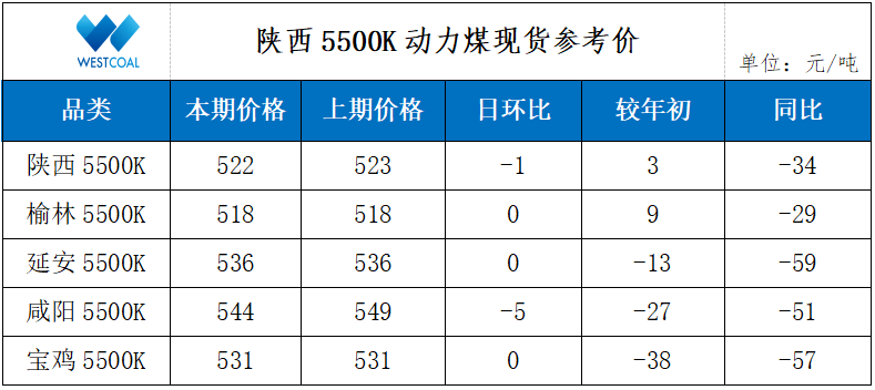 • 陕西5500K动力煤现货参考价