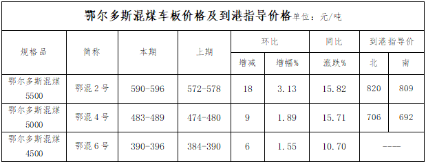 二、鄂尔多斯混煤车板价格及到港指导价格