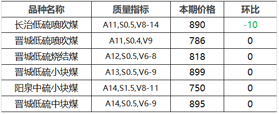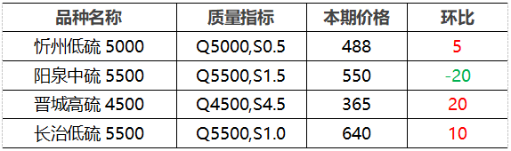 4.市场价格主要为中国太原煤炭交易网自动成交交易价格,个别为企业报价(坑口含税)。