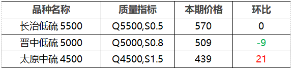 4.市场价格主要为中国太原煤炭交易网自动成交交易价格,个别为企业报价(坑口含税)。